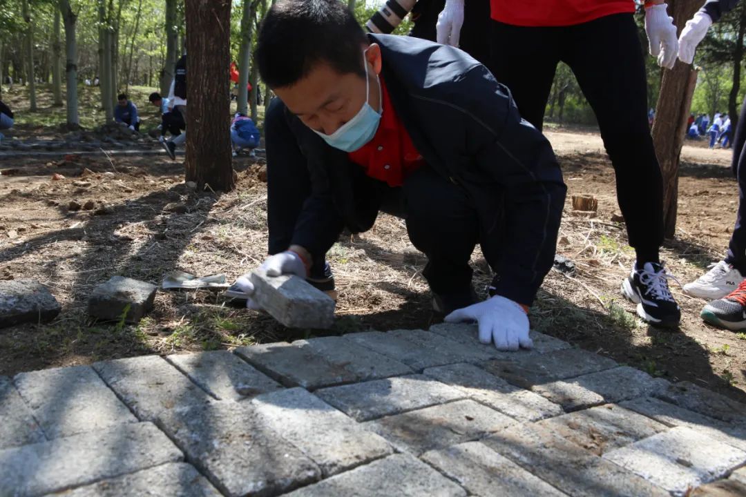 上午9时,参加劳动的全体师生在升旗广场集结完毕,随着学校党委启动命令的下达,党委书记翟文豹、校长孙小平分别带队,对正门出口北侧空地道路及校医院北侧河堤道路进行铺砖作业。同志们在指挥引导下,分散到工作区域各处,戴上手套、弯下身子,有的铺设地砖、有的平整地面、有的搬运材料,大家配合默契,动作娴熟,互帮互助,迅速投入到紧张的劳动中。春风吹拂,经过上午的辛勤劳动,铺砖工程很快有了成效,同志们用挥洒的汗水绘成了一幅光荣的劳动画卷,在新铺设道路的映衬下,周边环境显得更加整洁美观。