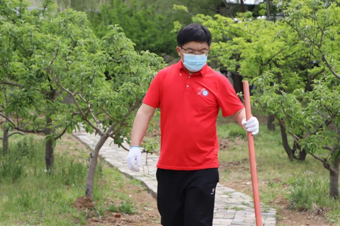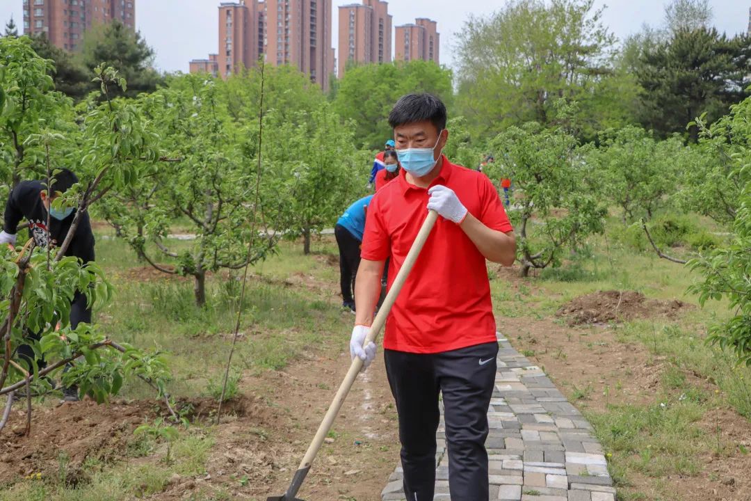 上午9时30分,参加活动的全体在校教工及学生志愿者分为4个工作组,分别由党委书记翟文豹,校长孙小平,党委副书记范振伟,副校长李润东指挥带队,开赴指定工作区域,对重点实验室北侧桃李园、蒲新教师公寓西侧河堤苹果园、重点实验室B座北侧桃李园及正门苹果园进行果树的扩种和补种工作。