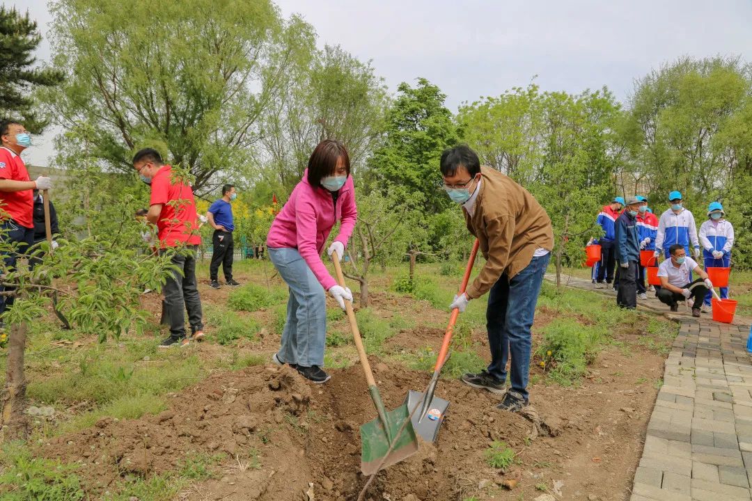 植树活动现场气氛热烈,大家三五人一小组,挥锹铲土、扶树正苗、培土踩实、引水浇灌,所有人默契配合,干劲十足,到处是忙碌的身影,呈现出一派热火朝天的劳动景象。经过大家的努力,四片区域共栽植桃树、苹果树、李树等1000余株,一株株茁壮的树苗稳稳地扎根在ac米兰的土壤中,为校园增添了一片片温馨绿意的同时,以实际行动践行“绿水青山就是金山银山”的发展理念。