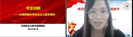 金梦兰老师的教学展示为《守正创新:正确把握科学社会主义基本原则》。金老师从三个方面进行了讲授,一是必须始终坚持科学社会主义基本原则,划清“发展”与“修正”的界限,反对任何背离科学社会主义基本原则的错误倾向;二是必须把科学社会主义基本原则与本国实际相结合,创造性地回答和解决革命、建设、改革中的重大问题,反对主观主义、教条主义;三是必须紧跟时代和实践的发展不断总结新鲜经验,与时俱进、以人民为中心,进一步丰富和发展科学社会主义基本原则。金老师的娓娓讲述让我们从理论的深度感受到中国道路不是苏联模式社会主义的老路,也不是偏离社会主义方向的邪路,而是一条守正之路、创新之路,其基础就在于对科学社会主义基本原则的正确把握。