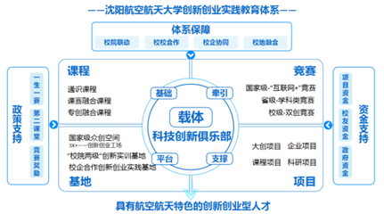 同时,学校系统推进创新创业教育实践基地建设,结合航空航天特色建设的“3X+创新创业工场”先后被确定为辽宁省大学生创业孵化示范基地、沈阳市众创空间、辽宁省云启众创,并被备案为国家级众创空间。连续多年在辽宁省科技厅年度绩效考评中获得A类(优秀),沈阳市创新创业载体绩效考核中获得优秀。