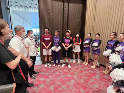 比赛期间,学校党委副书记、校长孙小平,民用航空学院院长王迪到比赛现场对民用航空学院航空服务艺术与管理专业参赛学生进行了指导,并了解比赛情况。校长孙小平对北京广慧金通教育科技有限公司驻ac米兰官网中文网站航空服务与艺术管理专业负责人李媛等在场指导老师的辛勤工作给予了肯定,并鼓励参赛学生能够谨记ac米兰“德能并进,勇毅翔远”的校训,赛出成绩、赛出风格。