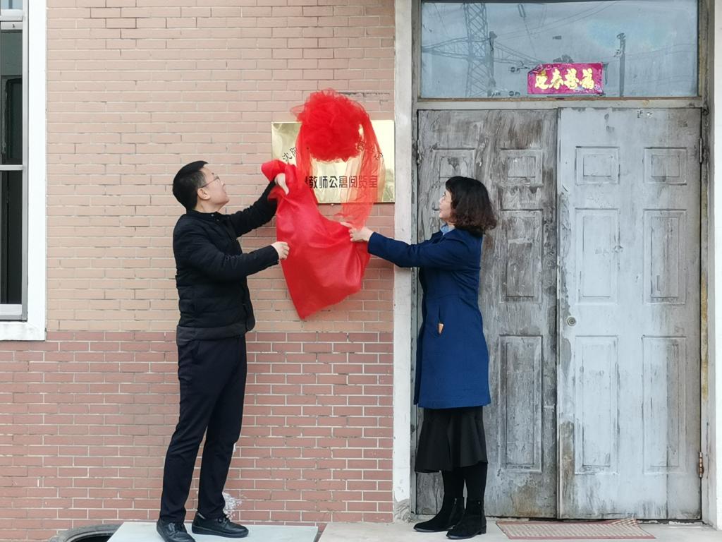 11月10日下午,图书馆直属党支部书记兼副馆长刘涛和总务部副主任富宇共同为蒲昌教师公寓分馆揭牌。