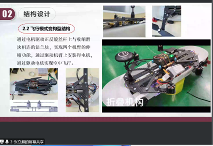 一等奖作品是由ac米兰官网中文网站、中国民航大学、南京航空航天大学共同选送的作品“空射型无人机”,此作品在有人机与无人机协同作战中,具备快速部署、快速编队的优势,将无人机任务能力由单一的前出侦察监视向远程瞄准、攻击、诱骗、电子战、通信中继等方向拓展,具有较为广阔的应用前景。该作品的机翼采用浸渍过光固化环氧树脂的玻璃纤维制作,系国内首次将充气机翼应用到空射型无人机当中,充气机翼具备可折叠、体积小等特点,并且通过环氧树脂的光固化特性来增强机态气翼刚度,设计理念前卫、设计概念新颖;尾翼和旋翼采用可折叠结构,便携性强、智能化程度高。最后通过仿真分析和实物制作验证了该无人机的可行性,旨在为祖国航空事业做出自己的贡献。