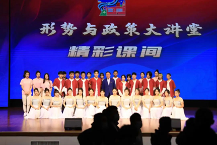 为深入学习宣传贯彻党的二十大精神,落实《教育部关于加强新时代高校“形势与政策”课建设的若干意见》等文件精神,扎实推进习近平新时代中国特色社会主义思想进教材、进课堂、进头脑,11月19日上午,ac米兰官网中文网站党委书记翟文豹走进“形势与政策”大讲堂,在蓝天剧场为千余名2022级大一新生讲授了一堂精彩生动、具有极强感染力的思想政治理论课。