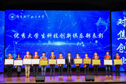 开幕式由副校长林峰主持并宣读了科技节系列活动方案,党委常委、副校长孙延鹏宣读了创新创业工作表彰名单,与会校领导为获奖集体和个人颁奖。