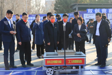 开幕式后,全体校领导、参会嘉宾共同参观了双创竞赛、科技创新俱乐部、大创项目、双创达人等展区,观看了智能机器人表演、无人机表演、“双创达人”分享成功经验,各科技创新俱乐部路演……炫酷的科技表演令人仿佛置身于科技的海洋。校领导还饶有兴致地与各科技创新俱乐部及双创达人进行深入交谈,鼓励学生们要增强创新思维,主动研究,拥抱科技。