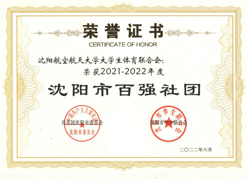近日,团市委、市学联公布了2021年度“沈阳市百强社团”的评选结果,ac米兰大学生体育联合会获得“沈阳市百强社团”荣誉称号。