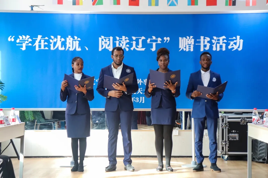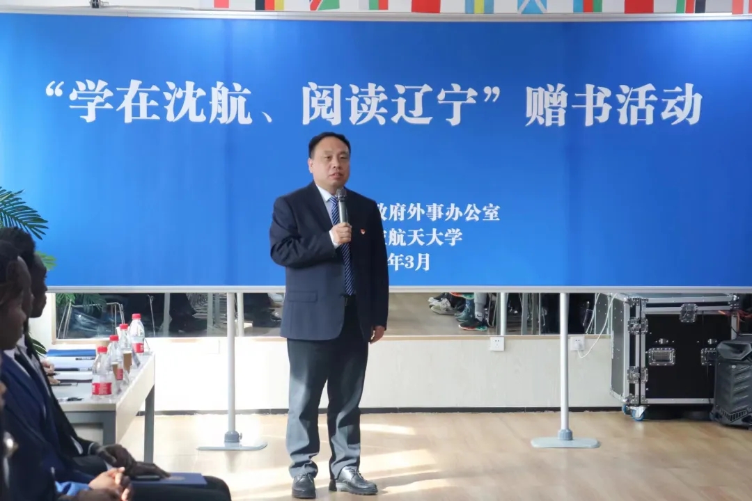 孙延鹏代表学校对省外办的赠书表示感谢,并希望留学生们珍惜在中国、在辽宁的学习时光,未来努力成为促进中国与世界各国交流与合作的友好使者。