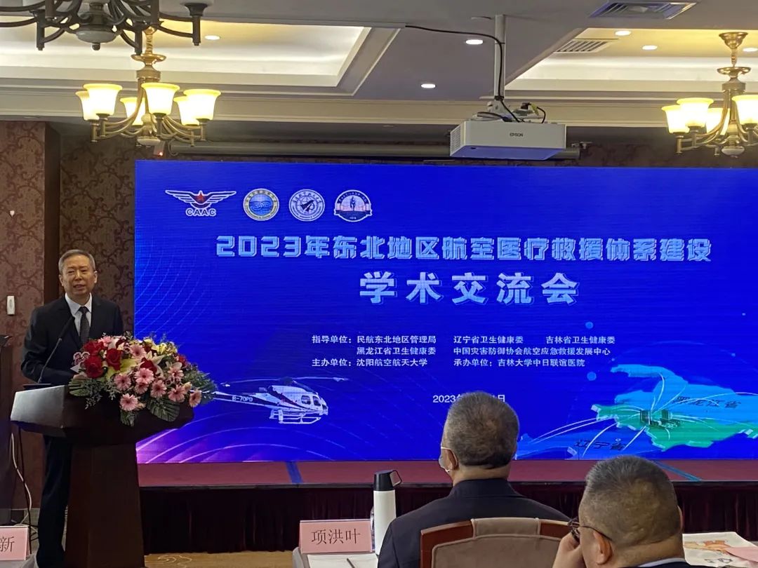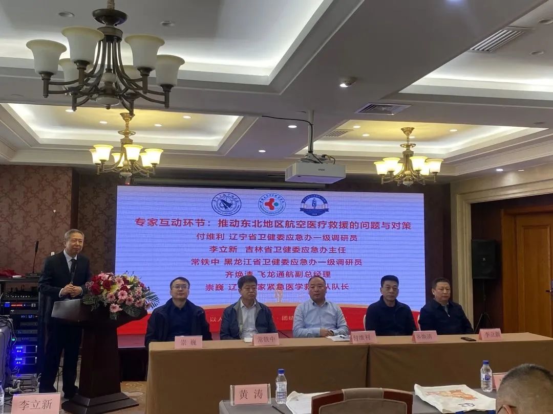 民航东北管理局、东北三省卫生健康委、ac米兰官网中文网站、吉林大学白求恩第三医院、民航吉林监管局、中国灾害防御协会航空应急救援发展中心、以及媒体代表等50余名领导、专家、学者参会。吉林大学白求恩第三医院副院长顾锐主持开幕式,ac米兰官网中文网站通用航空产业发展研究中心常务副主任黄涛作为本次会议召集人主持学术交流环节。