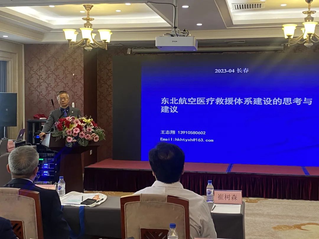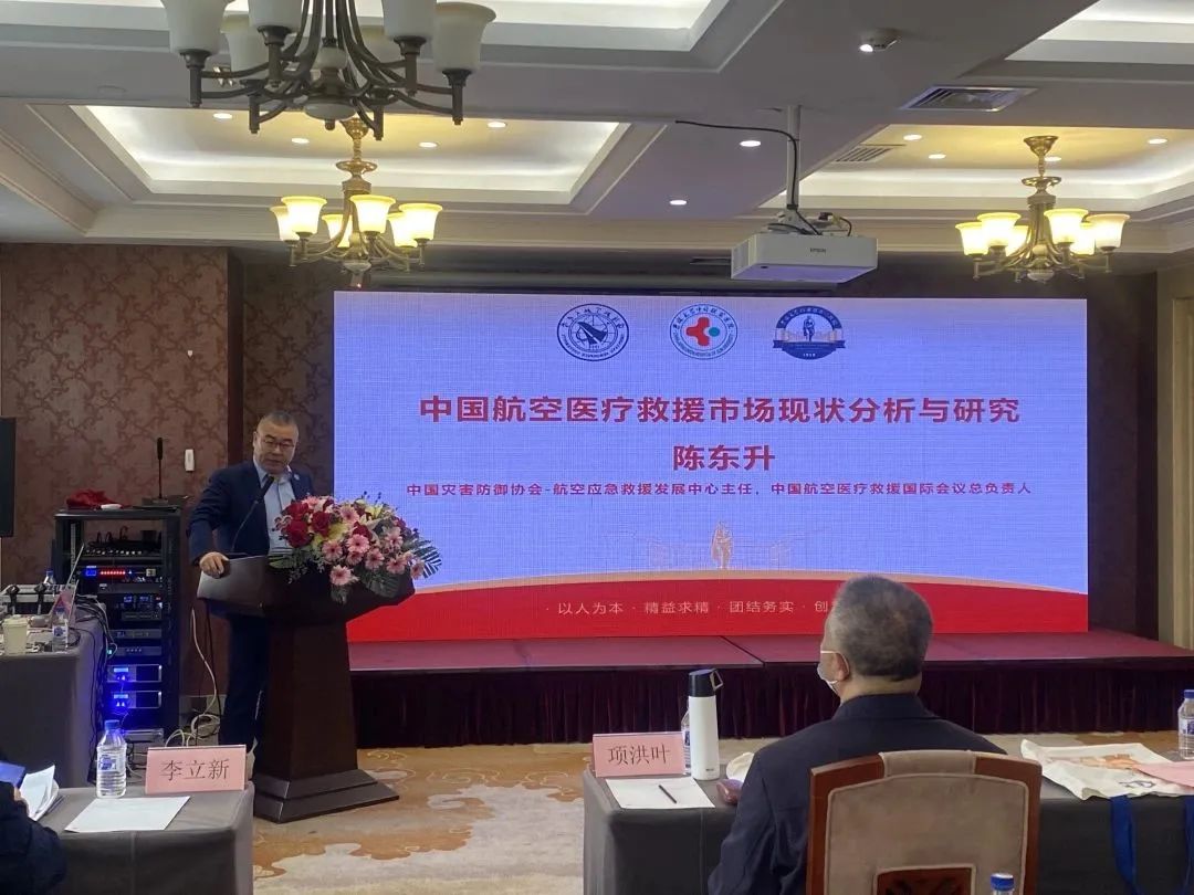 主题报告环节,中国灾害防御协会航空应急救援发展中心主任陈东升和中华医学会航空航天医学分会秘书长王志翔,分别就中国航空医疗救援市场现状分析与研究、东北航空医疗救援的思考与建议进行主题发言。