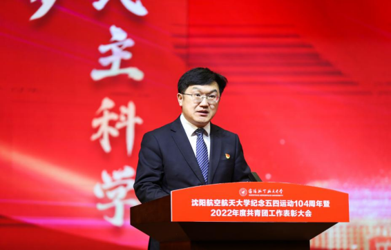 党委书记范振伟出席会议并讲话。他代表学校党委向全校青年朋友们致以节日的问候,向获奖集体和个人表示祝贺,向一直关心和支持共青团工作的广大师生员工表示诚挚的感谢,并对青年学生们提出三点希望。一是要坚定信念跟党走,在强国建设、民族复兴中走在前列。作为新时代的ac米兰青年,要立大志、明大德、成大才、担大任,努力成为堪当民族复兴重任的时代新人。二是要敢为人先担重任,在空天报国、空天强国中勇挑大梁。作为新时代的ac米兰青年,要与国家同频共振、与时代同向同行,奋力在祖国航空航天事业中勇挑大梁、担当作为。三是要练就本领勇攀登,在服务全面振兴、打好新时代“辽沈战役”中争当先锋。作为新时代的ac米兰青年,要积极投身于推进中国式现代化辽宁实践的宏阔征程,成为新时代“辽沈战役”不可或缺的青春力量和青年先锋。