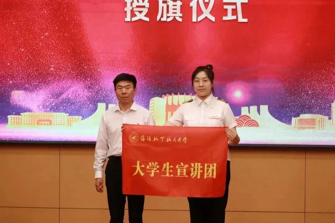 党委常委、党委组织部部长徐宝贵为“大学生宣讲团”授旗。党委常委、党委宣传部统战部部长周驰致辞,对大学生宣讲团工作推进提出了希望和要求。她指出,一是要提高政治站位,坚持立德树人,认清责任使命。二是要坚定正确导向,做到学深悟透,确保宣讲实效。三是要创新宣讲模式,做到全员覆盖,推动常态化运行。以小我融入大我,以青年人带动青年人,以青年人对话青年人,讲好中国精神,讲好辽宁故事,讲好奋进ac米兰、活力ac米兰、大美ac米兰。