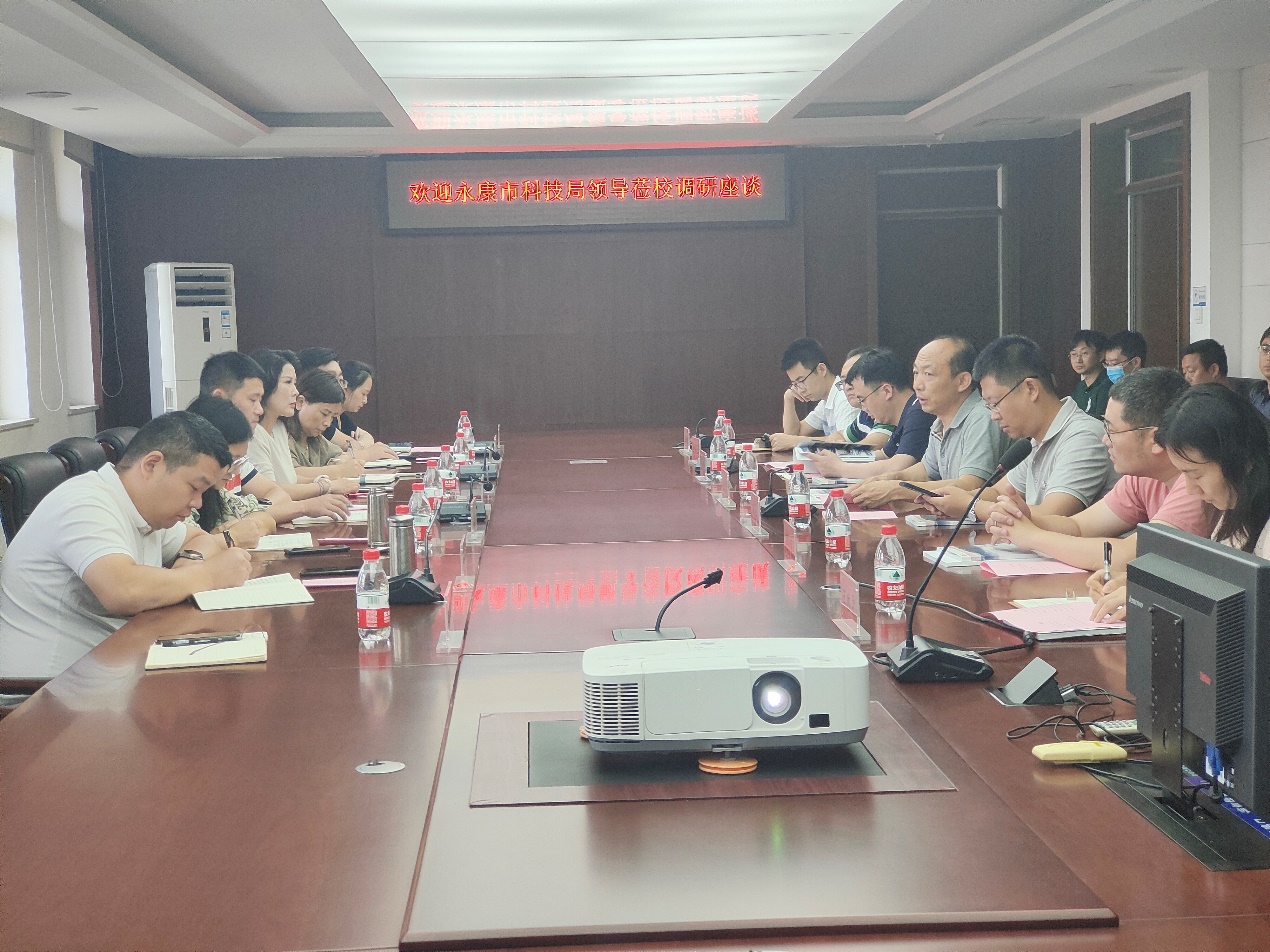 浙江省永康市科学技术局进校调研,是学校结合学习贯彻习近平新时代中国特色社会主义思想主题教育,加强校、地、企合作,推动学校实现高质量发展的重要举措。