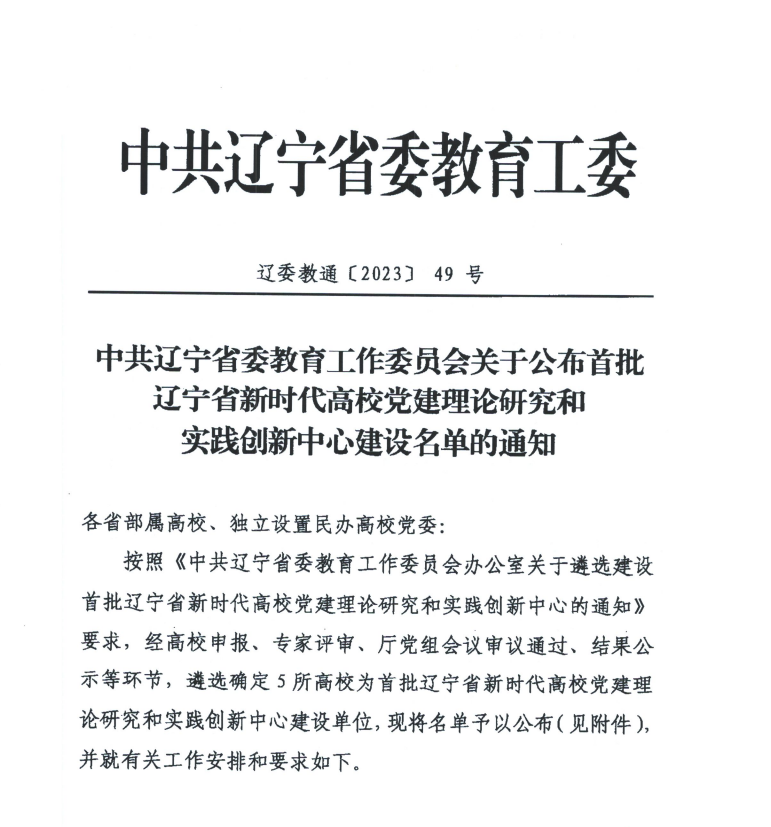 首批辽宁省新时代高校党建理论研究和