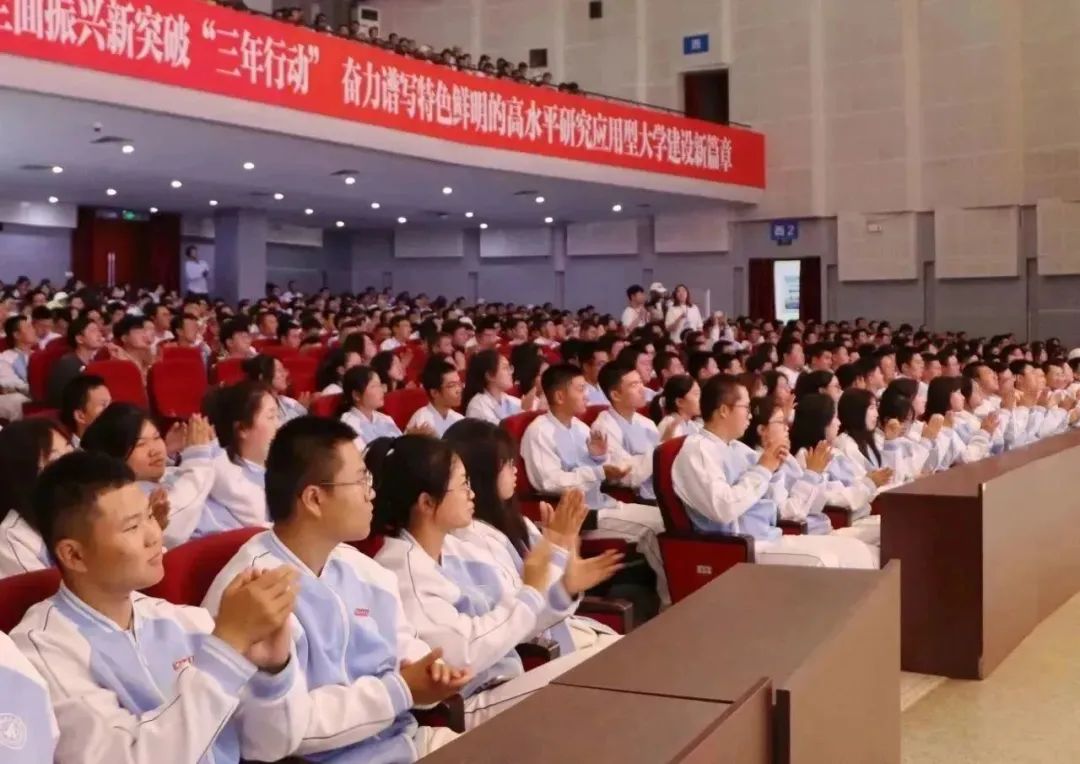曲建武教授与全体师生分享了自己勤勉奋斗的人生经历和自己对大学的理解和认识。围绕“热爱祖国、热爱中国共产党、坚定理想信念、刻苦学习、培养刚毅坚卓的品格、锤炼品德修为、遵纪守法、强身健体”8个关键点,从为人、为学、为事等多个角度勉励大家要在青春的赛道上跑出当代青年的最好成绩。他饱含深情地说:“大学生一定要政治上、思想上追求进步,要跟党走,入党不是一时,是一世。”“为党好好工作、好好学习,就是对老师最大的回报”。谈到追求时,他说:“当代中国青年生逢其时,施展才干的舞台无比广阔,实现梦想的前景无比光明,要为了祖国而读书,为祖国奉献自己的知识与力量。”谈到学习时,他说:“大学生要珍惜学习机会,主动学习,积极实践,只有一直学习,才能一直在路上,才能有更丰富的眼光去看待这个世界。”谈到志向时,他说“必须摒弃骄娇二气,争做有理想、敢担当、能吃苦、肯奋斗的新时代好青年,在中国式现代化建设中挺膺担当。”报告既妙语连珠,又饱含哲理,引起全场师生的强烈共鸣和深思,全场氛围热烈、掌声雷动。