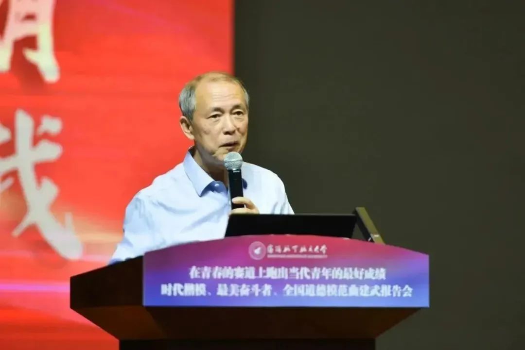 9月25日,学校邀请时代楷模、最美奋斗者、全国道德模范、学校特聘教授曲建武为师生作题为《在青春的赛道上跑出当代青年的最好成绩》的报告。