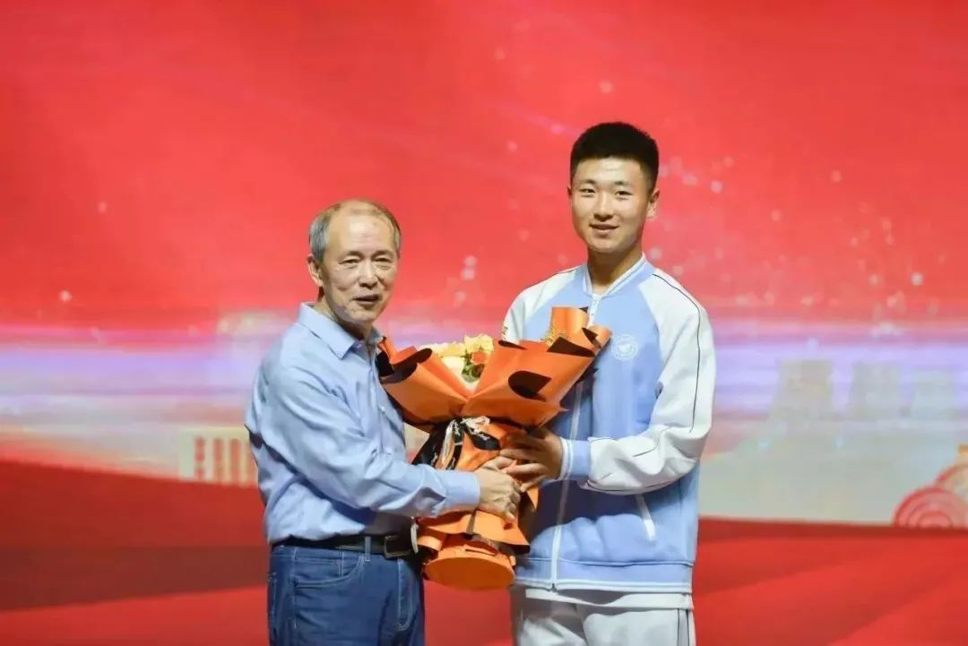 报告结束后,学生代表向曲建武教授献花,表达真挚的敬意和感谢。