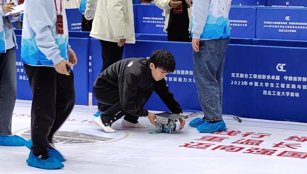 高水平的设计制作调试和高强度的赛前集中训练,使学校参赛队成为少有的不使用量角器等辅助工具,仅靠个人手感就能准确发车、同时还能完成几乎全部赛点的参赛队,单眼瞄、一手推、一把成的手法技惊全场,最终进入社区环节。
