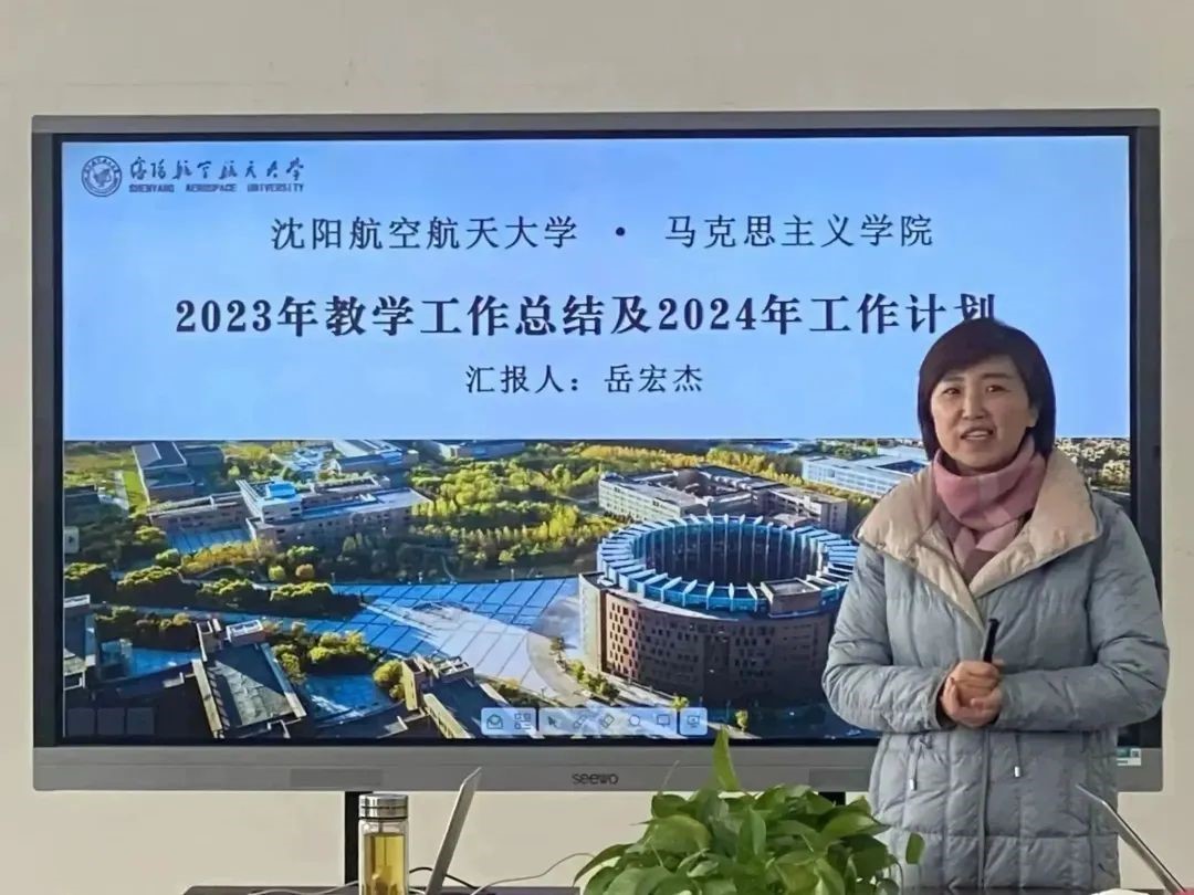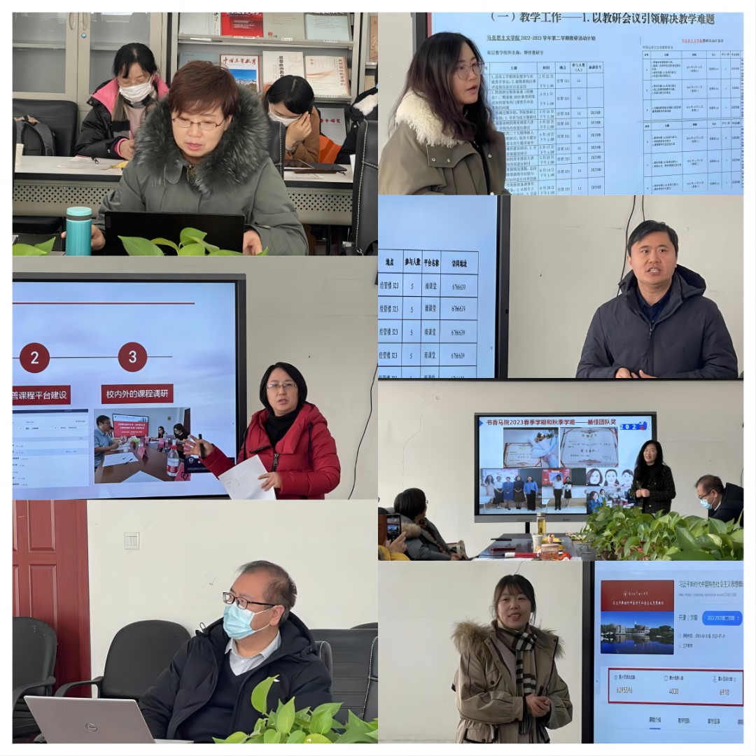 副院长岳宏杰对2023年马克思主义学院教学工作总体情况进行总结,并对2024年马克思主义学院教学工作目标及主要工作任务进行安排部署。她指出,2023年学院以争创辽宁省示范马克思主义学院为目标,以提升思政课高质量发展为重点,建设了一批一流本科课程,培育了一批思政课教学标兵,形成了一批教学改革成果,有效推动了“大思政课”建设。2024年,马克思主义学院将不断加强思政课教师队伍建设,举办以“教学质量提升”为主题的系列教学论坛,持续提升教师教育教学能力,推进思政课改革创新。各教研室要拓展工作思路,着力做好集体备课、课程建设等各项工作。