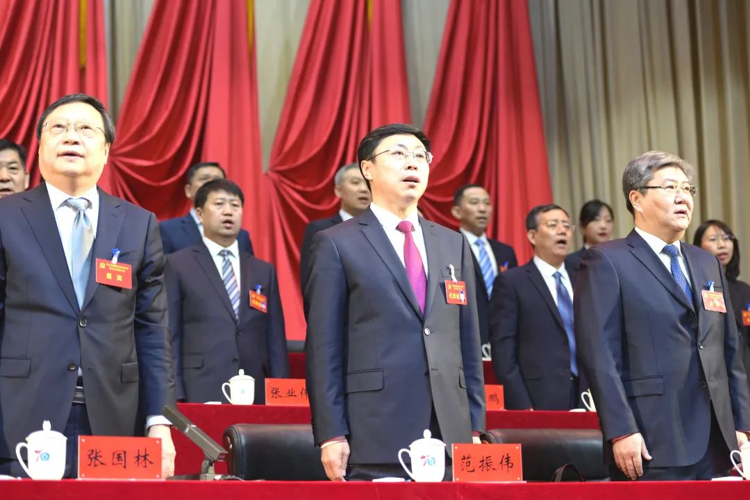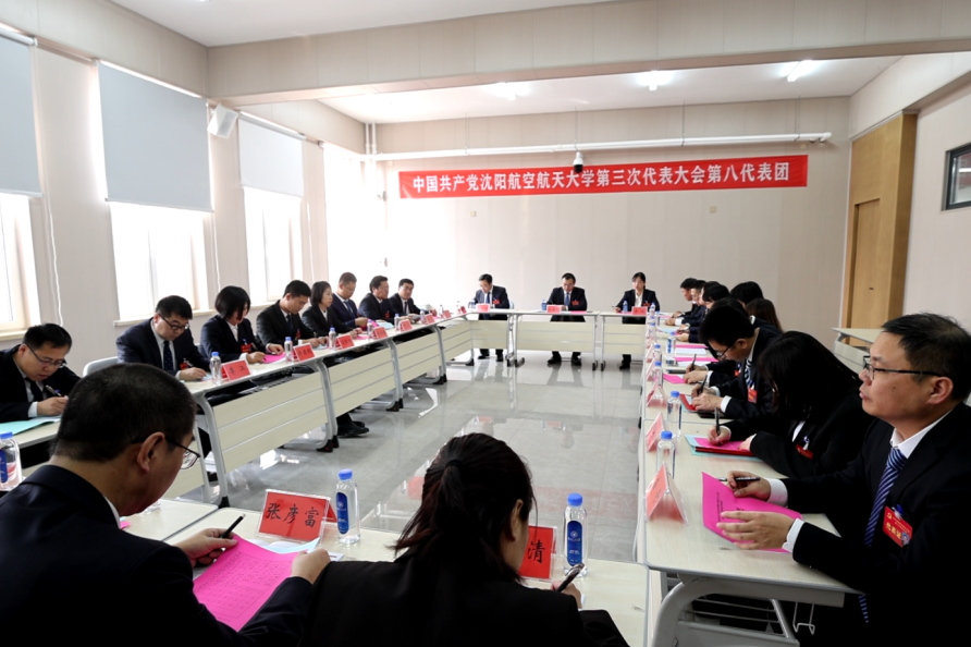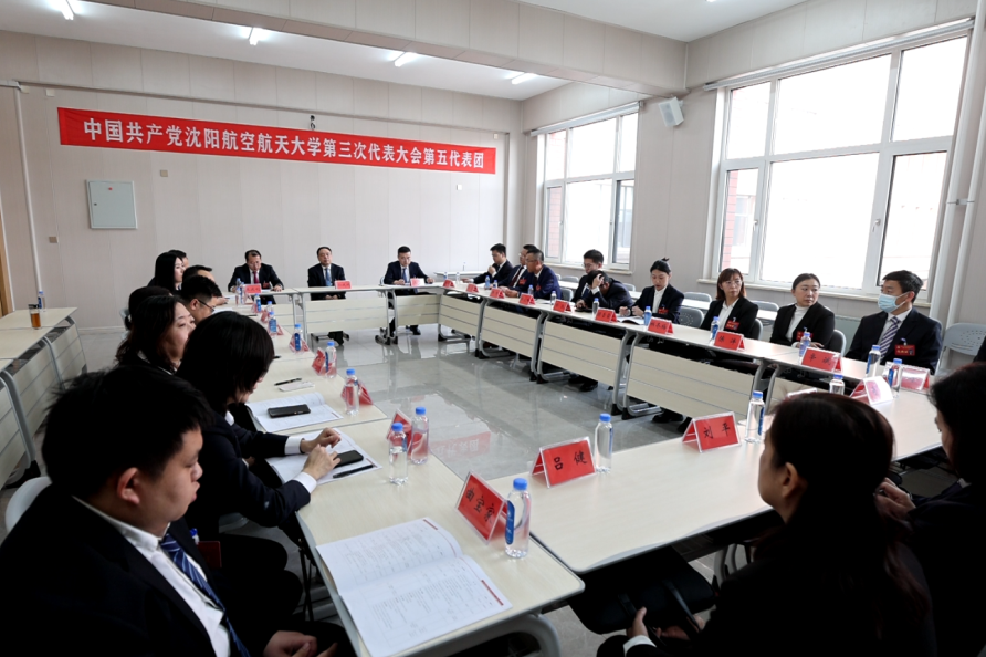 大会会场气氛庄严热烈,主席台正中悬挂的中国共产党党徽熠熠生辉,10面红旗鲜艳胜火,分列两侧。“矢志空天报国,聚力振兴发展,奋力开启高水平研究应用型大学建设新征程”的标语庄重醒目。