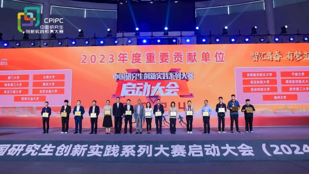 4月12日,由教育部学位管理与研究生教育司指导,中国学位与研究生教育学会主办的中国研究生创新实践系列大赛启动大会(2024)暨“创新人才培养模式服务发展新质生产力——研究生教育赋能城市发展与产业创新”论坛在武汉召开。大会发布了《中国研究生创新实践系列大赛2023年度报告》,从规模、质量、组织等多个维度对研究生培养单位进行综合评价,并向2023年度为大赛做出重要贡献的58所高校进行致敬表彰 。学校位列中国研究生培养单位年度建设和组织贡献力第6位,获2023年度“重要贡献单位”。