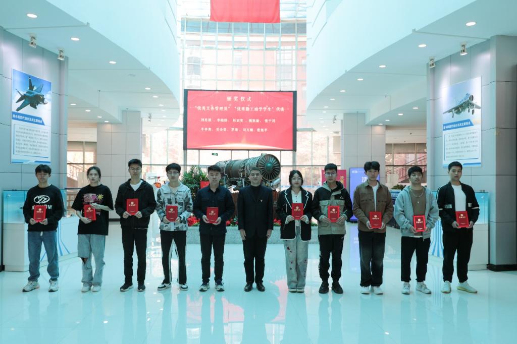 学生处处长王迪为“优秀义务管理员”“优秀志愿管理员”颁发荣誉证书