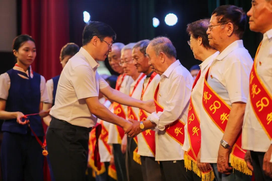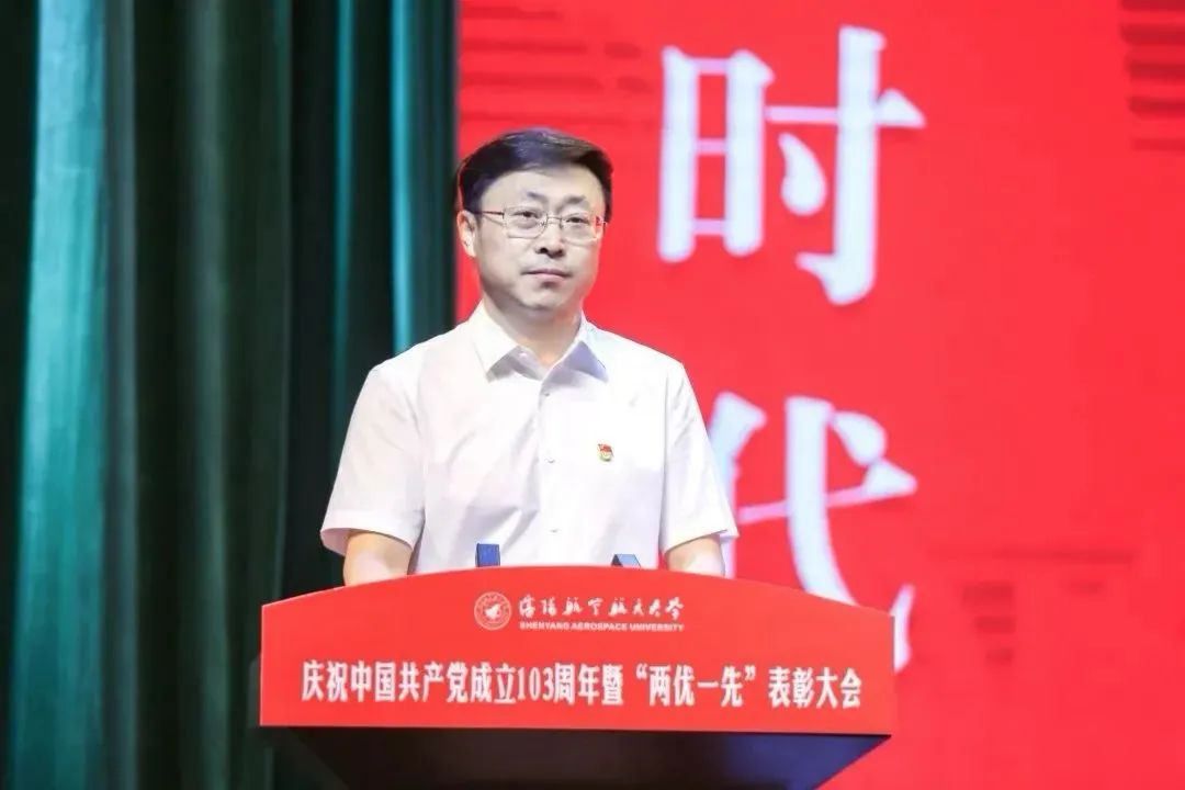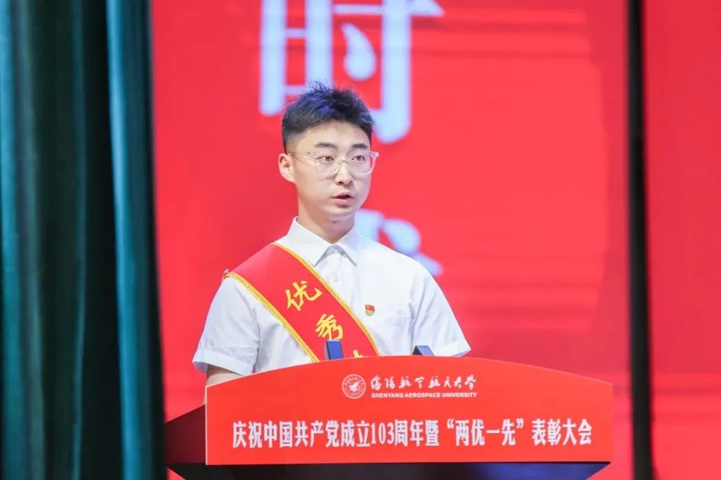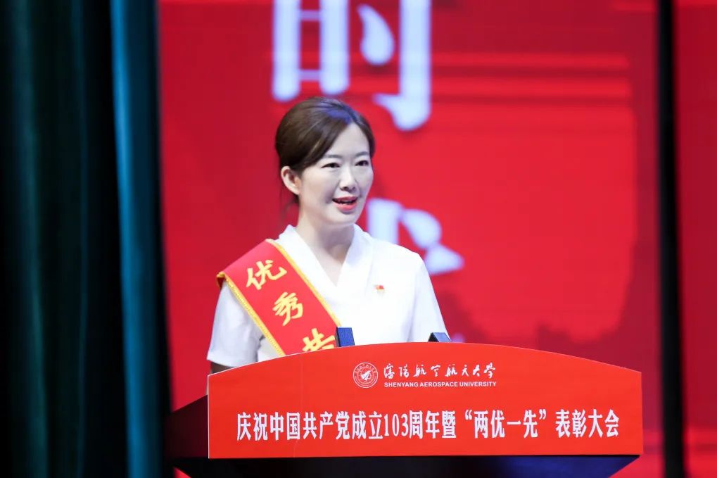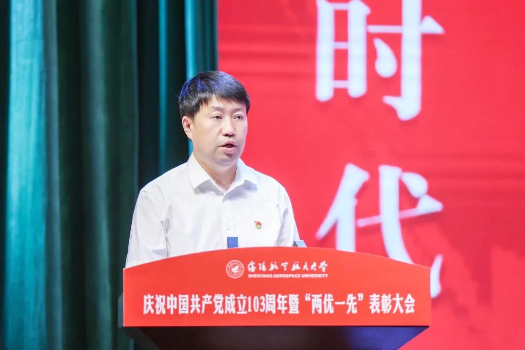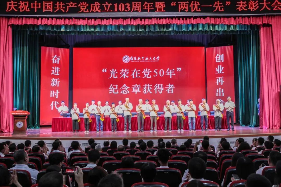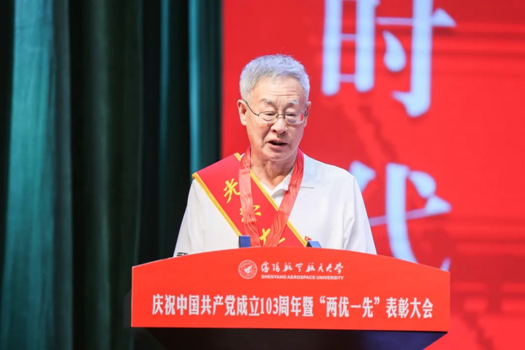 “光荣在党50年”纪念章获得者、原沈阳航空工业学院副院长、离退休工作处第三党支部书记王兆伟,获奖代表马克思主义学院教师党员张青,航空发动机学院学生党员于瀚科先后做交流发言。