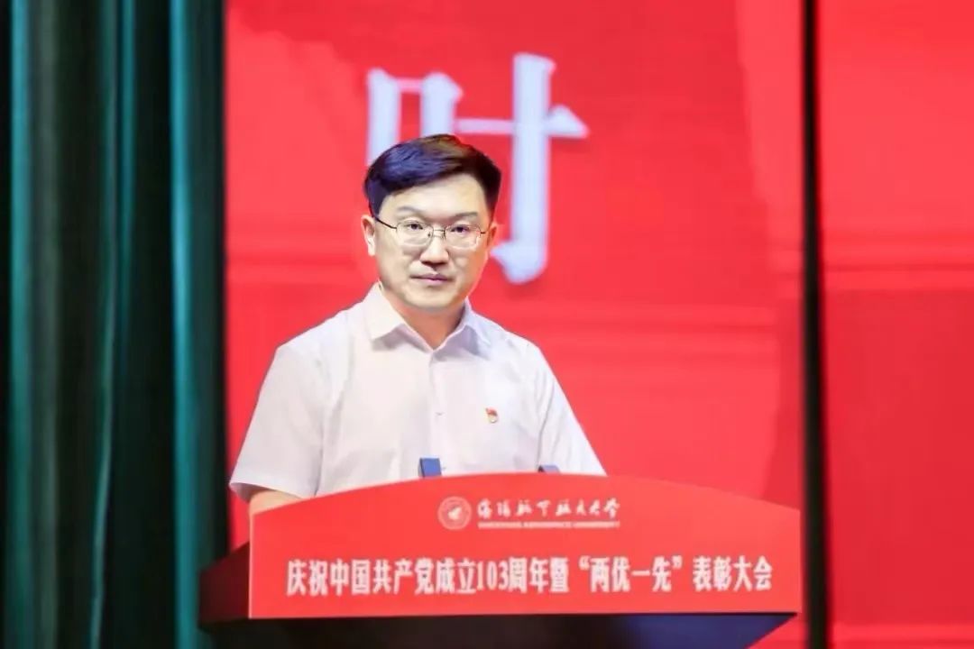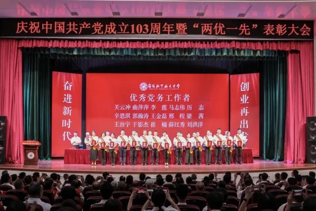 为庆祝中国共产党成立103周年、表彰过去一年来为学校发展做出突出贡献的先进集体和优秀个人,6月28日,ac米兰官网中文网站庆祝中国共产党成立103周年暨“两优一先”表彰大会在蓝天剧场隆重召开。全体校领导、党委常委,全体中层干部,组织员,教职工党支部书记,教职工党员代表,学生党员代表参会。大会由党委副书记张业伟主持。