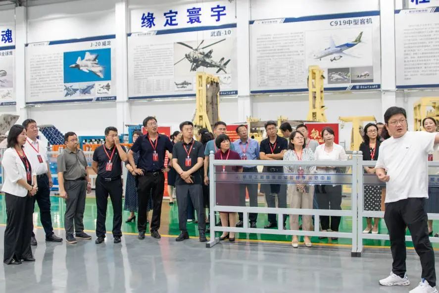 各高校研究生院院长及导师代表来到通用航空实践基地、航空发动机实训中心等实践基地,参观了实训中心四条发动机装配线,飞机整机及部件结构拆解件、智能搬运车系统、自动制孔机器人系统、航空发动机动转子动平衡、零部件超声波清洗实验室等场馆,对大国重器的生产制造有了感性认识,对新时代航空报国精神有了更深刻领悟。