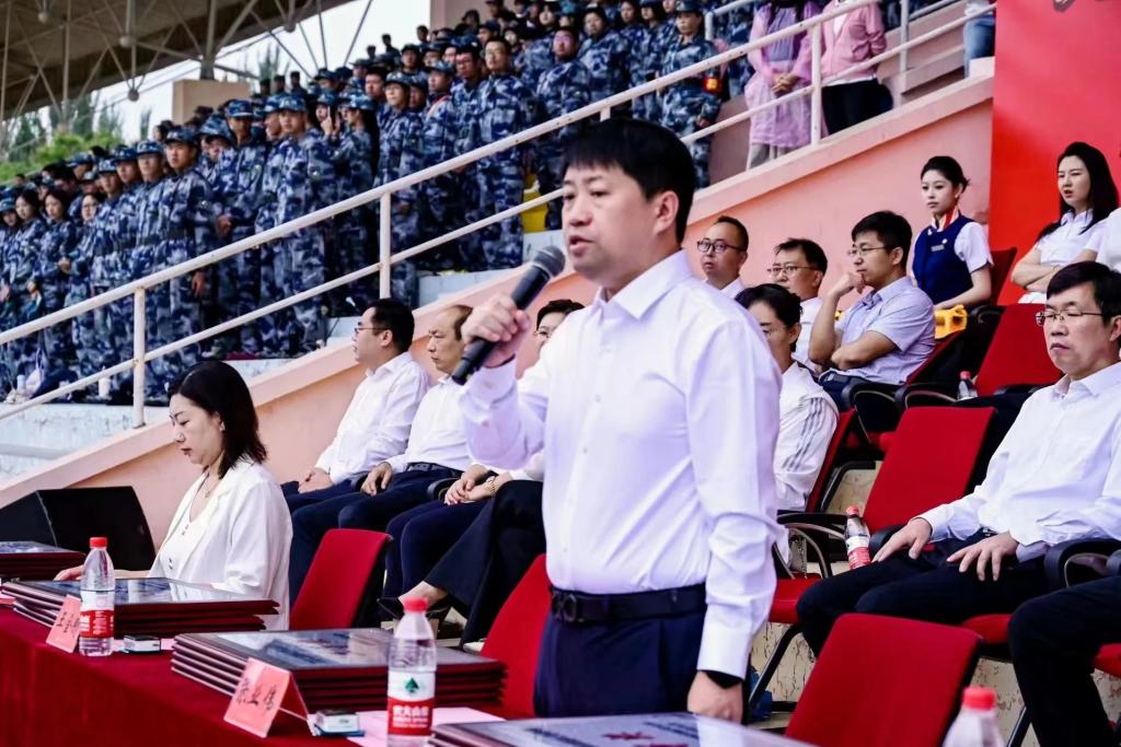 9月7日,ac米兰官网中文网站2024级本科生军训总结表彰大会在体育场隆重举行。校党委副书记张业伟,党委常委、副校长孙延鹏,党委常委、副校长王金刚,党委常委、组织部部长徐宝贵,党委常委、宣传部部长周驰出席大会。参加大会的还有学校各二级学院院长、书记、副书记、全体辅导员、全体军训教官和参训新生。大会由党委学生工作部部长、学生处处长、武装部副部长王迪主持。