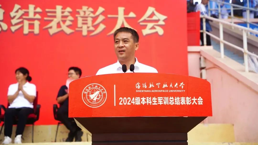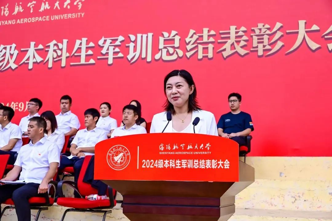 党委学生工作部部长、学生处处长、武装部副部长王迪宣布2024级本科生军训总结表彰大会到此结束。