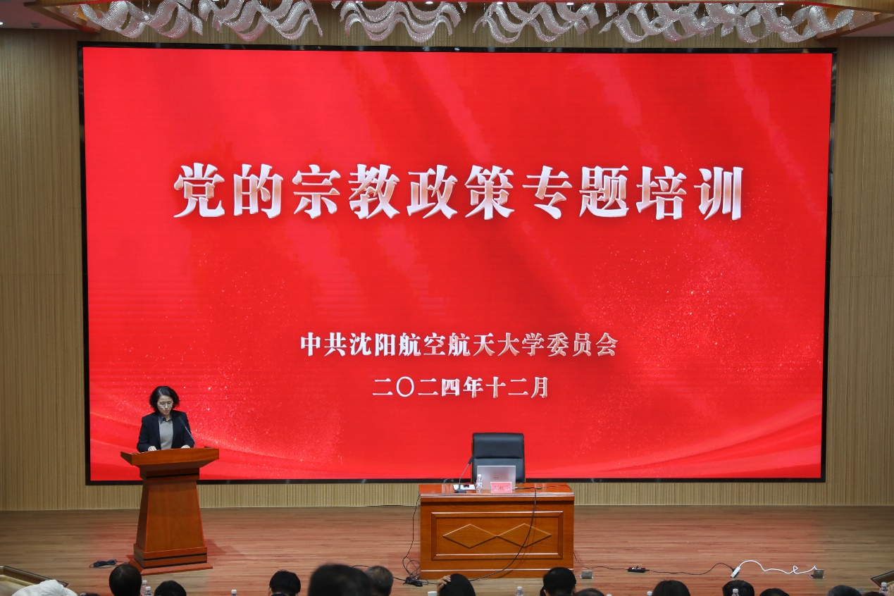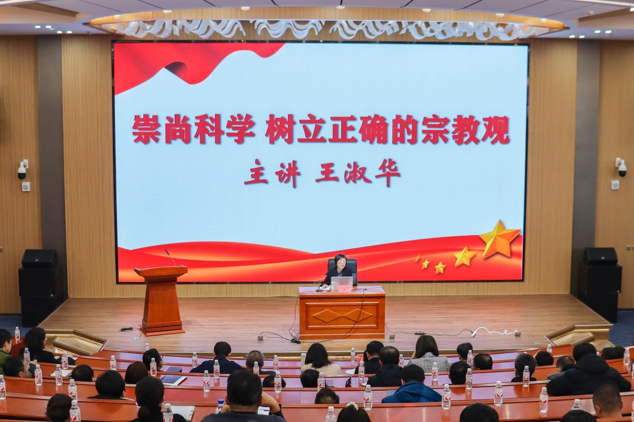 本次培训邀请到了中共辽宁省委党校、辽宁行政学院、辽宁省社会主义学院民族宗教教研部主任王淑华教授以《崇尚科学树立正确的宗教观》为题作了专题培训讲座,从“树立正确的宗教观”“坚持党的宗教工作基本方针”“严密防范抵制校园传教”三个方面深入阐释党的宗教工作方针和政策。讲座内容丰富、分析深刻,紧密结合高校工作实际,深入浅出地对如何抵御和防范校园传教渗透工作进行了实务指导。
