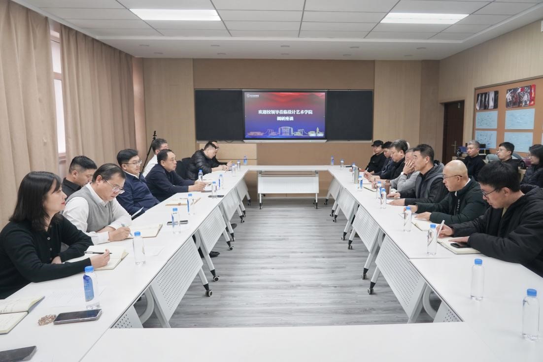 校长李润东对设计艺术学院各项工作给与充分肯定,并对学院下一步发展提出了重要建议。他强调,设计艺术学院应从以下方面开展工作,推动学院迈向新的发展阶段。一是要大力推进学科高质量发展。坚持落实三年行动,完成收官实数,对当前学科布局进行深入分析,积极讨论专业调整方向,谋划未来学科高质量发展策略。通过优化资源配置,聚焦优势学科,提升学院整体竞争力;二是要坚持开拓进取,以新增“设计”硕士点建设为契机,打破固有思维模式,整合各方资源,形成独特优势和特色,提升学院学术水平,吸引更多优秀人才,为学院发展注入新的活力;三是要深化产学研合作,致力于培养复合型、创新型、应用型人才,积极推动科研成果转化,切实助力地方经济社会发展。通过与通航等企业的紧密合作,为学生提供更多实践机会,提升学生的综合素质,同时也为学院科研成果的落地创造条件;四是要坚持自立自强,全面强化自身建设,加强内部管理,完善制度体系建设,充分调动教师的积极性和创造性。建立科学合理的管理机制,营造良好的教学科研环境,为学院的长远发展奠定坚实基础。