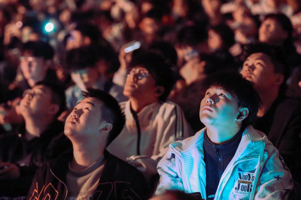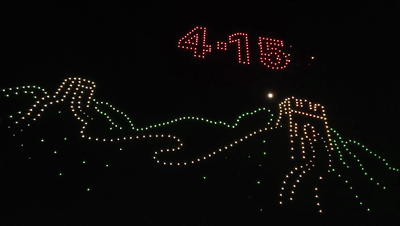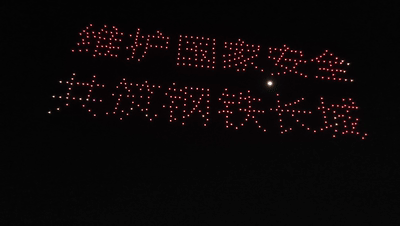 夜空中,600架无人机组成的编队“翩翩起舞”,不断变换队形。“全民国家安全教育走深走实十周年”“维护国家安全 共筑钢铁长城 12339”“国家安全 人人有责 12339”“4·15 国家安全 一切为了人民 一切依靠人民”“辽宁国安 与你同行”“沈水之阳 我心向往”“国防安全”“粮食安全”“生态安全”“能源安全”“产业安全”等图像,以及辽宁舰、大飞机以及沈阳标志性建筑,在夜空中斑斓闪烁,为前来观看的师生和市民打造了一场视觉盛宴,呈现出国家安全教育的重要意义。