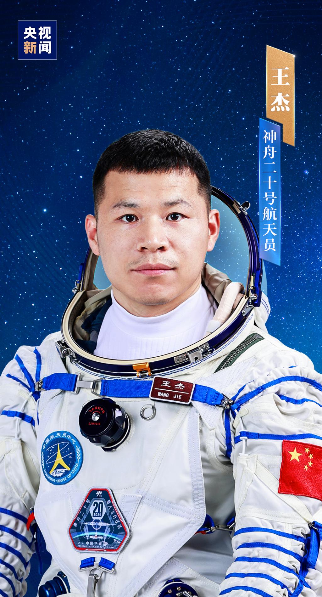 航天员陈冬执行过神舟十一号、神舟十四号载人飞行任务,时隔两年再次担任指令长。陈中瑞、王杰均为第三批航天员,即将踏上个人首飞之旅。其中,陈中瑞入选前是空军飞行员;王杰入选前是航天科技集团有限公司空间技术研究院的工程师。神舟二十号航天员王杰是