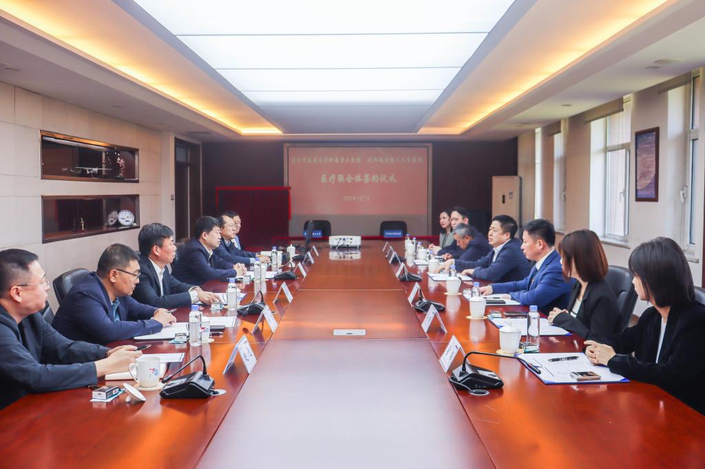 5月7日,ac米兰官网中文网站医院与辽宁中医药大学附属第二医院医疗联合体合作签约仪式在学校举行。校长李润东,党委副书记张业伟,辽宁中医二院党委书记于永铎,党委副书记、院长张文顺,副院长于雪峰,辽宁中医药大学附属第二医院和学校相关部门负责人参加仪式。会议由总务部主任王庆利主持。