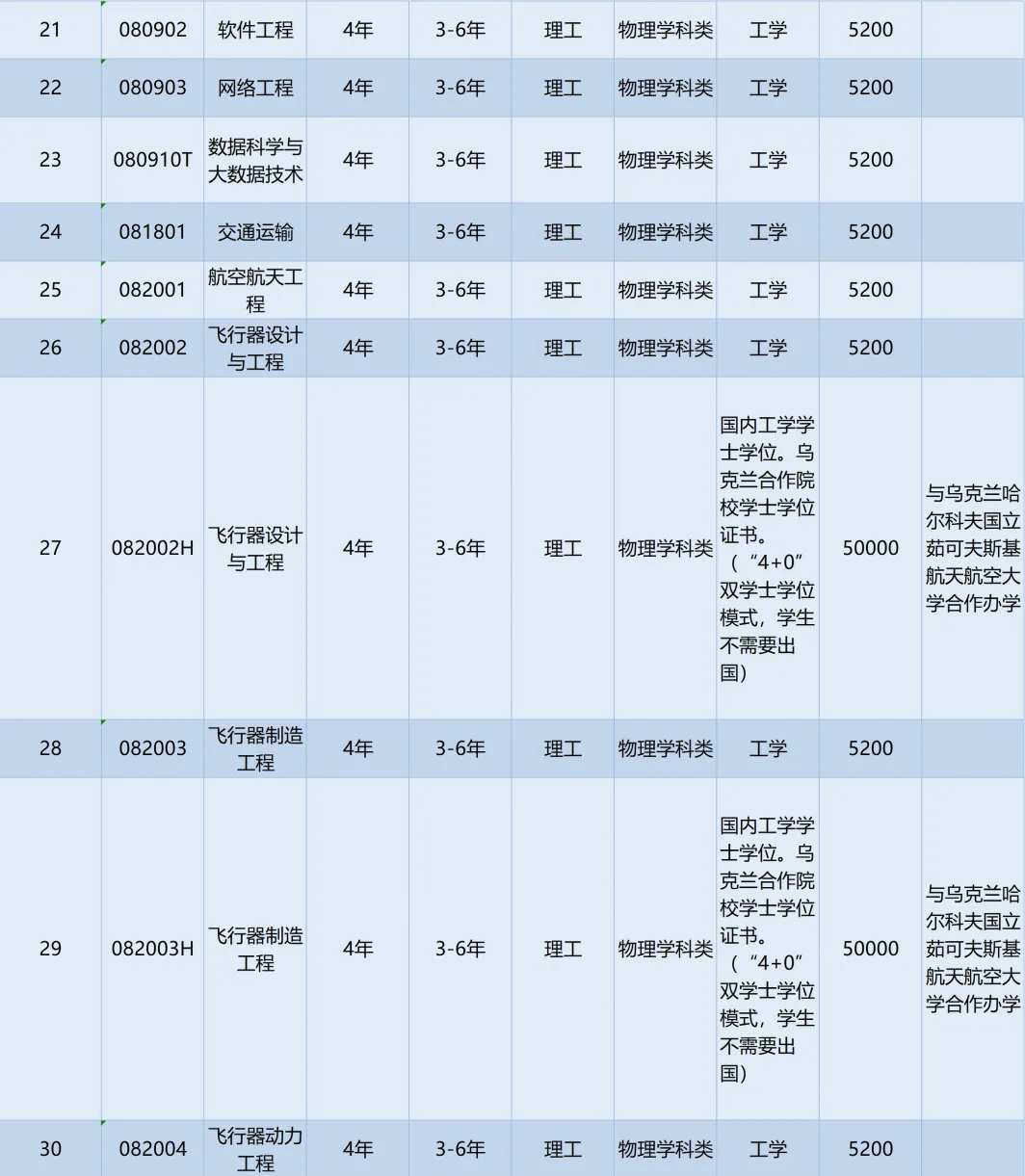 自动化(中外合作办学)、飞行器设计与工程(中外合作办学)、飞行器制造工程(中外合作办学)、飞行器动力工程(中外合作办学)专业只招有志愿的考生。