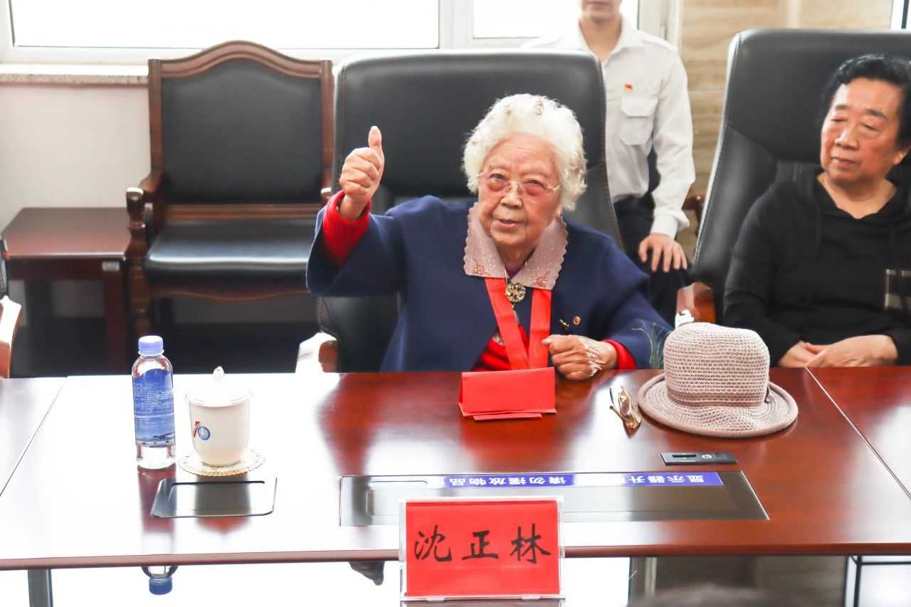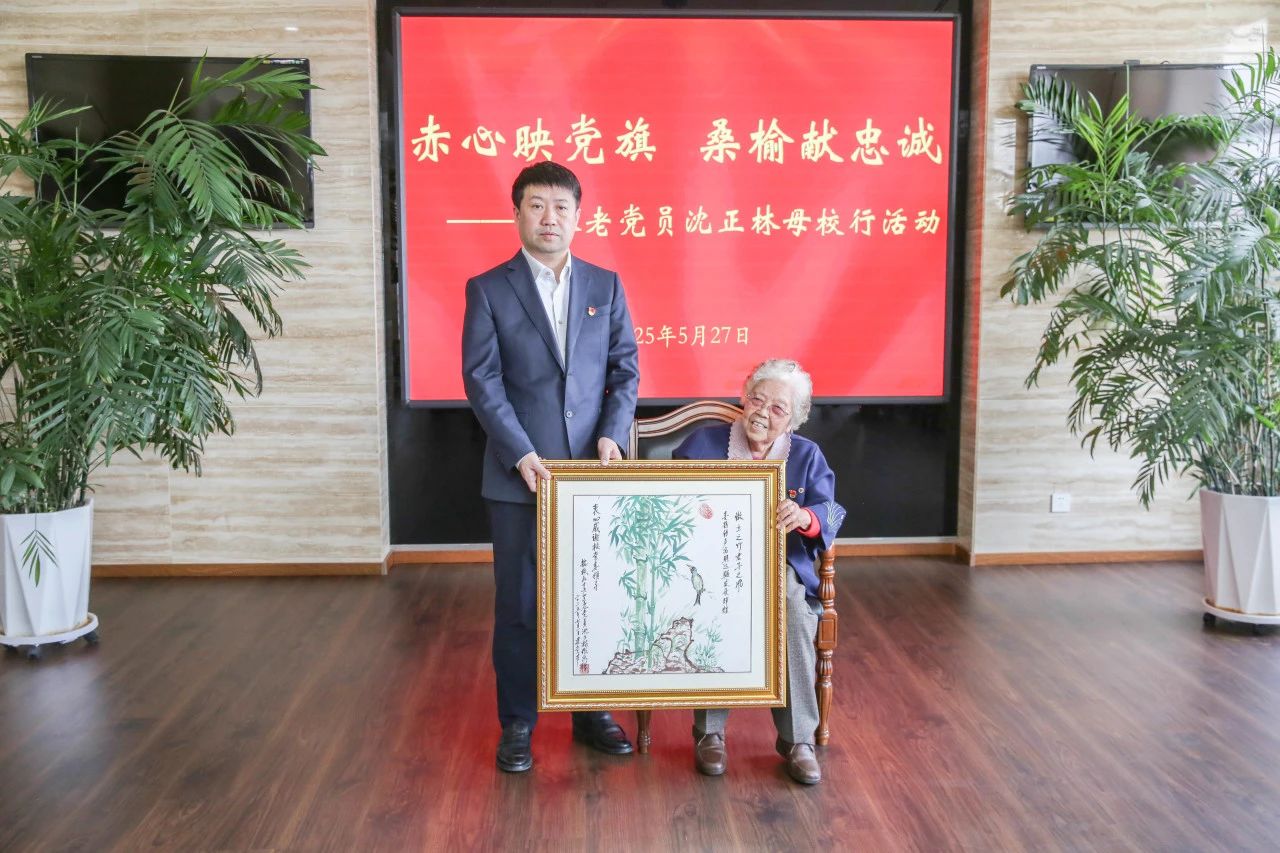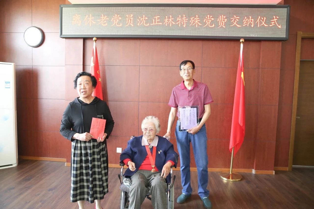 范振伟代表学校领导班子向沈正林同志的返校表示热烈的欢迎。并表示会在沈正林同志100岁生日时去看望她,欢迎她能在80年校庆时再返学校。他为沈正林同志颁发了交纳特殊党费证书。