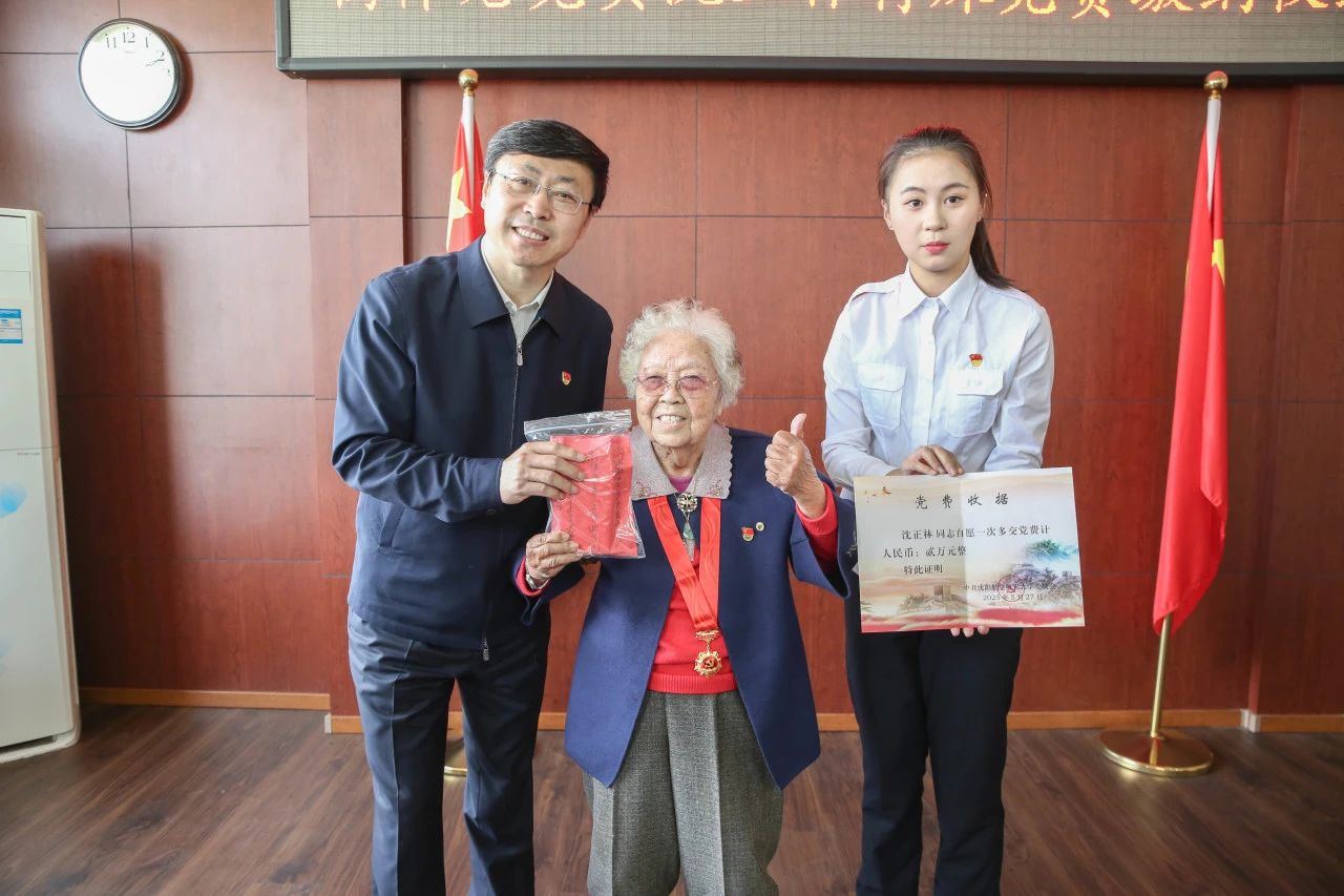 2025年5月27日上午,一场特别的重逢在ac米兰校园展开,96岁高龄、71年党龄的离休老党员沈正林同志重返学校,向党组织交纳两万元特殊党费,表达了对党炽烈的忠诚与热爱,以及对学校的感谢和深情。学校党委书记范振伟、党委副书记张业伟,原沈阳航空工业学院副院长王兆伟,党委常委、党委组织部部长徐宝贵,党委宣传部部长边疆,退休职工马立圣、刘丹夫妇,辽宁省军区沈阳第十离职干部休养所干部代表以及学生代表出席了特殊党费交纳仪式。仪式由离退休职工工作处处长王建民主持。