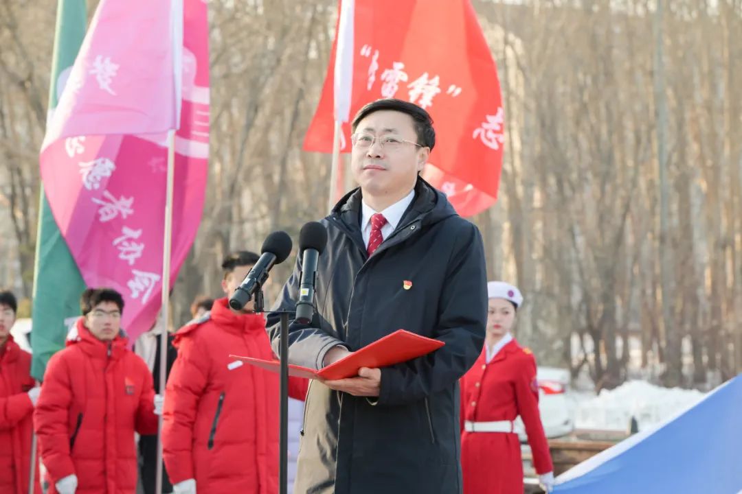 党委书记范振伟在飘扬的国旗下为师生讲授“开学第一课”。他表示,今年是新中国成立75周年,是实现“十四五”规划目标任务的关键一年,是辽宁全面振兴新突破三年行动的攻坚之年,在全校上下凝心聚力喜迎第三次党代会之际,范振伟代表学校党委,向全校师生提出殷切希望: