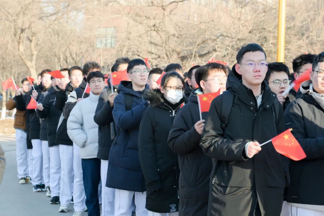 随着75米巨幅国旗在手中缓缓传递,现场全校师生齐声高唱《歌唱祖国》,表达对祖国的热爱和祝福。