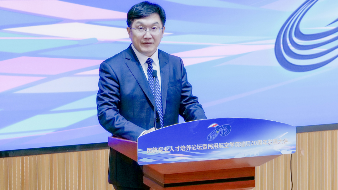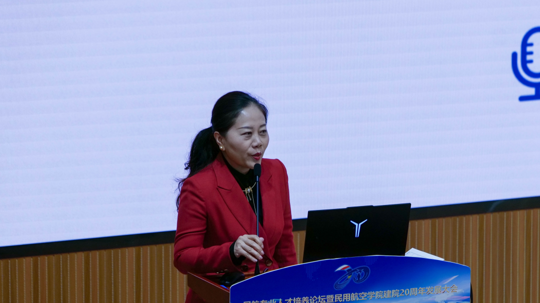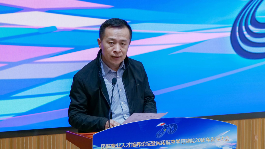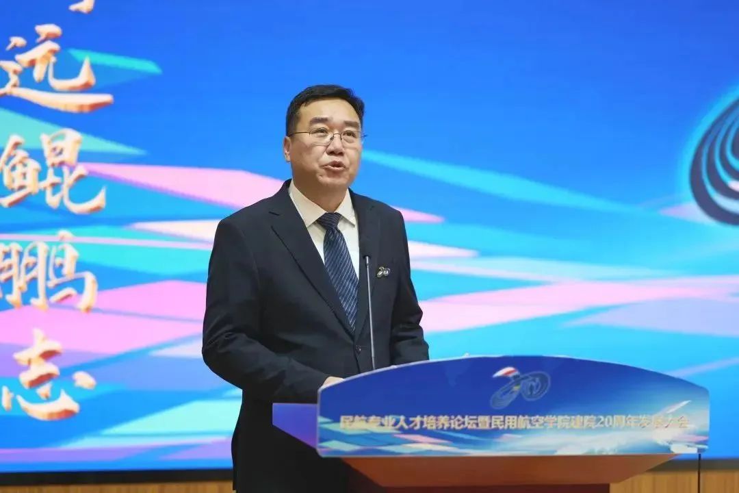 学院院长屈力刚作题为《聚力特色发展 勇立创新潮头奋力开启一流民航学院建设新征程》报告,回顾了学院20年来取得的成就。