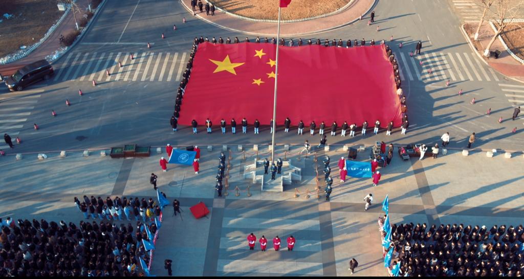 升旗仪式在校歌《梦圆长天》的激昂旋律中圆满完成。